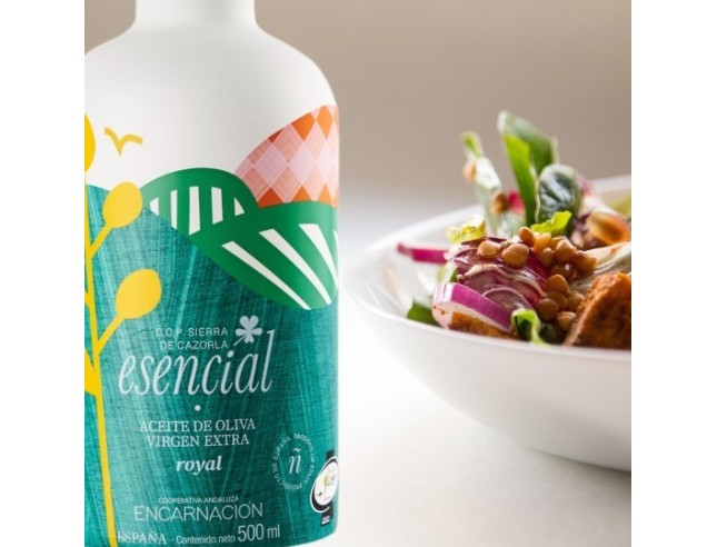 Nuestro Esencial es un aceite de oliva virgen extra único en el mundo: el único AOVE monovarietal de la variedad Royal con Denominación de Origen Protegida, cultivado de forma tradicional y ancestral en la comarca de la Sierra de Cazorla, territorio del que esta variedad es originaria.
