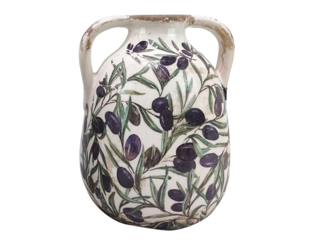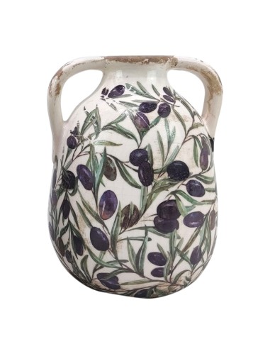 Este elegante jarrón de cerámica con motivos de olivo es una pieza decorativa única que aporta estilo, tradición y calidez a tu hogar.