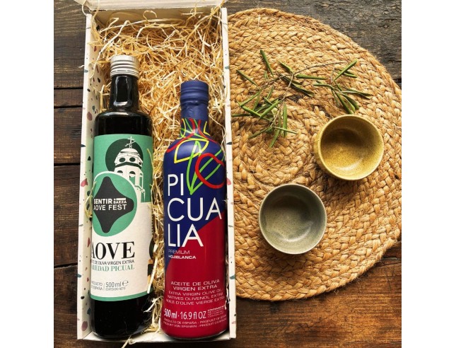 Esta estupenda caja regalo con aceite de oliva de calidad premium está formada por: