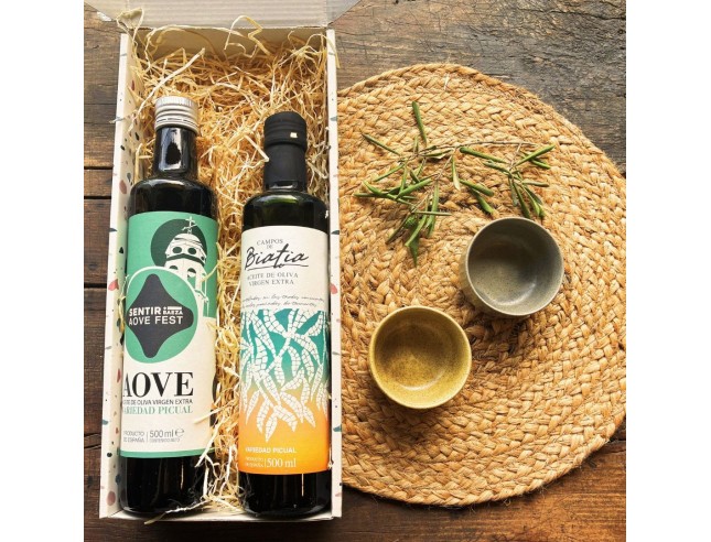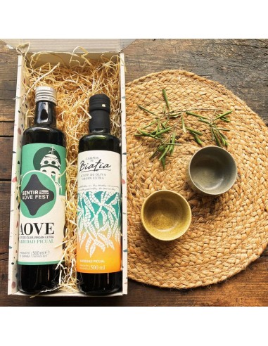 Esta estupenda caja regalo con aceite de oliva de calidad premium está formada por: