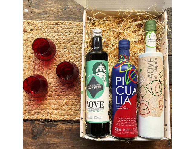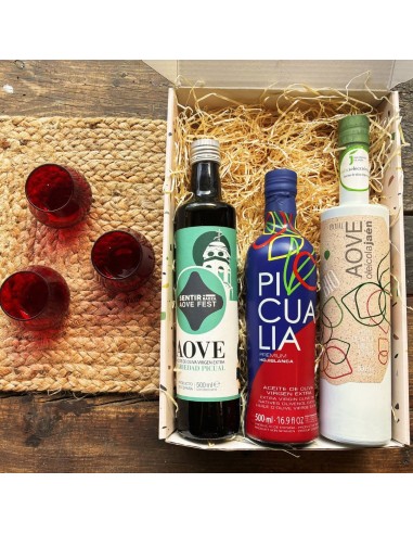 Esta estupenda caja regalo con aceite de oliva de calidad premium está formada por: