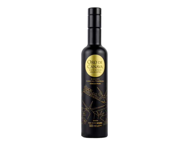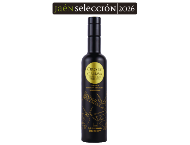 Descripción: "Olor frutado intenso de aceituna verde, gran complejidad entre aromas verdes y frutos secos: hierbabuena, tomatera y piel de plátano con matices maduros de almendra, higuera y manzana. Sabor limpio, fragante, con armonía entre el amargo ligero y el picante progresivo. Muy estructurado y persistente"